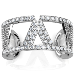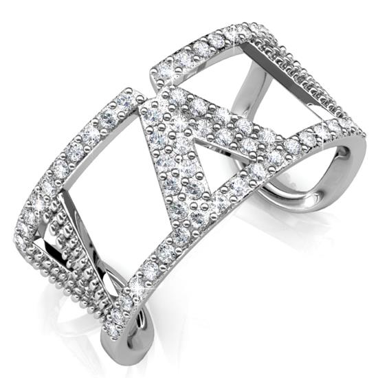 18K White Gold Plated Women's Open Back V Ring with Clear Sparkling Crystals By Matashi Size 5