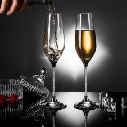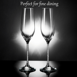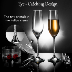 - EYE-CATCHING DESIGN: Up your champagne glass game with these elegant yet eye catching glasses! Made from clear crystal crafted into the traditional flute, the tiny crystals in the hollow stems add an extra sparkle!