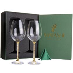 T his charming set of 2 elegant crystal wine glasses is sure to add a touch of elegance to any party. The hollow stem contains tens of tiny gold crystals that sparkle in the light and the design is simple yet eye catching! Truly functional elegance, give it as a gift or use at your next party!