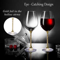 Crystal Gold Foil Wine Glasses Set 18.5 oz 18.5 oz- Lead-Free Gold Crystal Sparkling Wine Wedding Glasses, Elegant Crystal Filled Glassware - The Perfect Gift For Weddings, Parties and Special Celebrations