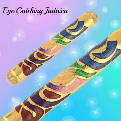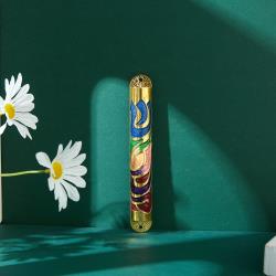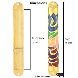 Gold Hand Painted Multi Color Enamel 6'' Mezuzah Embellished with Hebrew Shin Home Door Wall Decor Housewarming Present Gift for Holiday Festival