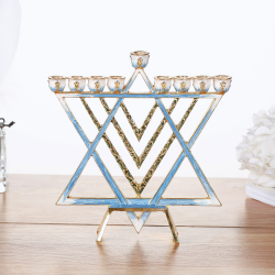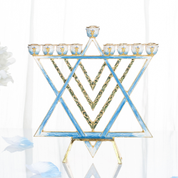 - With a blue and white motif and a big Star of David in the center, the 8 branches stand majestically united. The perfect gift for a spiritual someone in your life as a decoration or religious symbol!