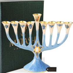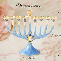 Hand Painted Enamel Menorah Candelabra with a Star of David Design and Embellished with Gold Accents and High Quality Crystals by Matashi