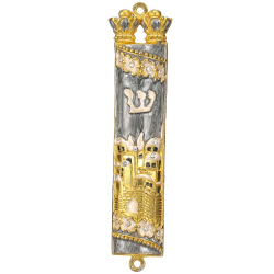 - The mezuzah is decorated with the hebrew letter "shin" and a Jerusalem City design with crystal embellishments. The perfect gift for someone who has just purchased a new house. Surprise the proud owners of a house with this religious symbol!