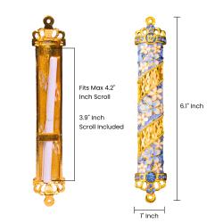 - Exquisite Design:The Matashi Mezuzah features a stunning hand-painted design, studded with shimmering Matashi crystals, making it a beautiful and eye-catching piece for your door. [Insert color and design variations as needed]