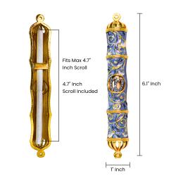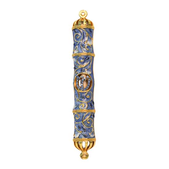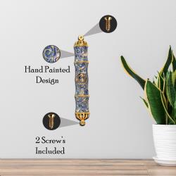 Matashi Dark Blue Jeweled Enamel Mezuzah with Gold Accents and Stunning Crystals, Jewish Mezuzah with Scroll for Door, Hand Painted Judaica Gift for Home Blessing and Protection